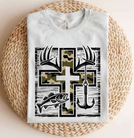 Camouflage Cross Hunting Fishing Unisex T-shirt