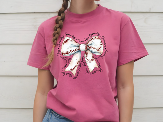 Coquette Baseball Game Day Bow Graphic T-shirt