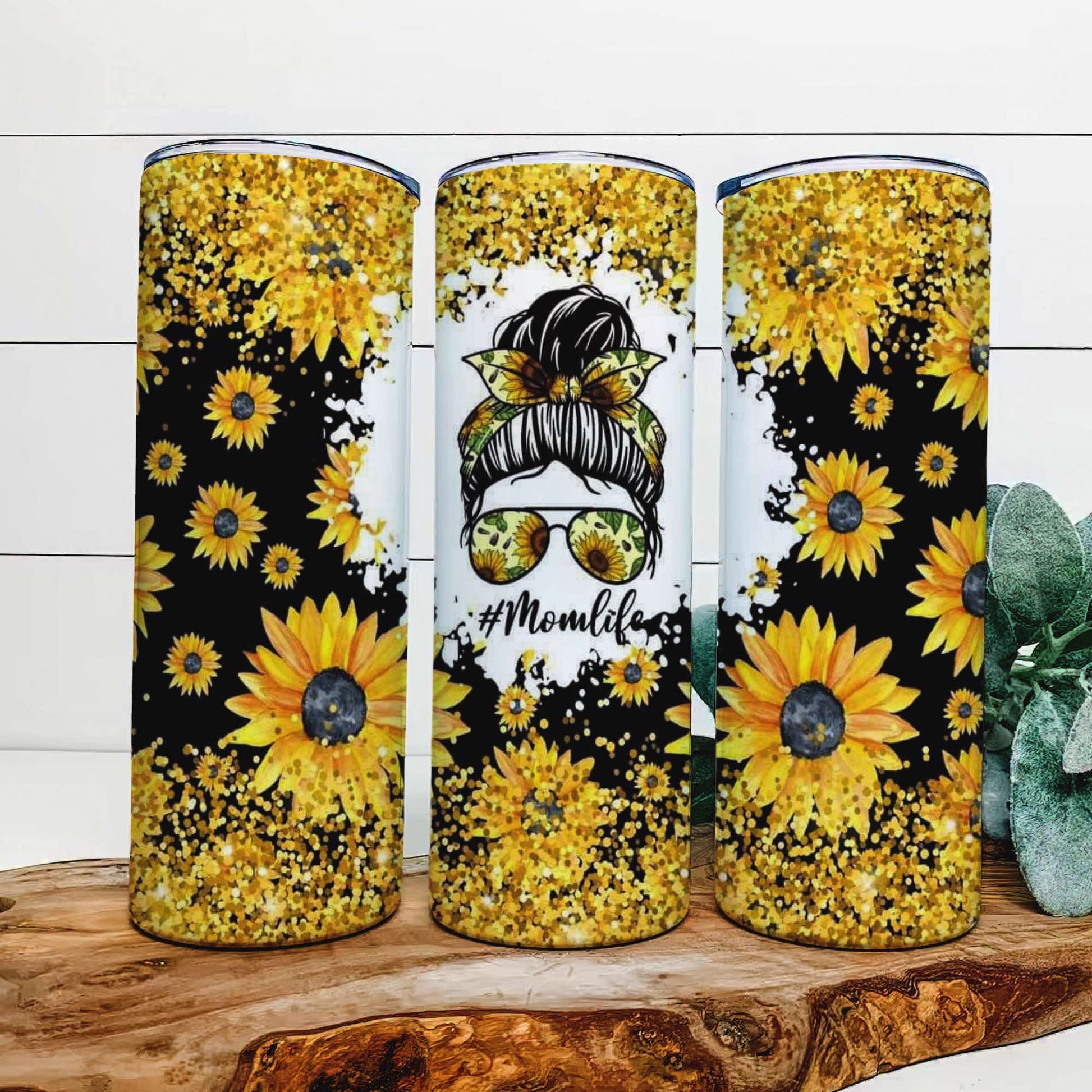 Black and Yellow Sunflower Mom Life 20oz Straight Tumbler - Perfect for On-The-Go - Drinkware, Portable