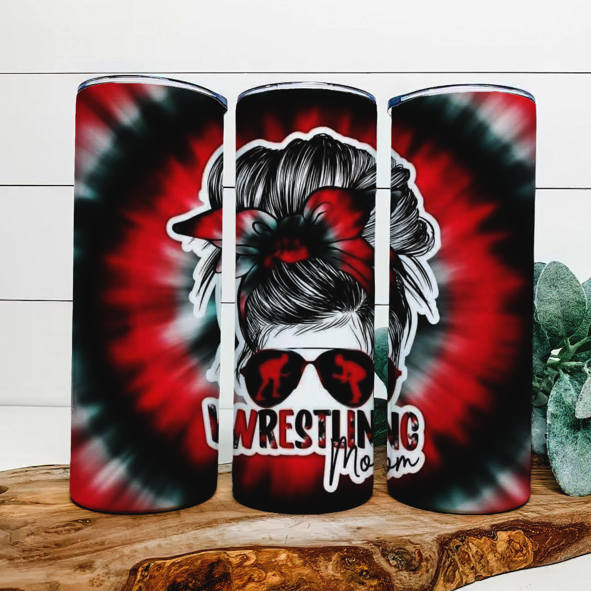 This 20oz insulated tumbler, designed for wrestling moms, comes in red, black, and white and includes a lid, straw, and presentation box. It keeps drinks at the perfect temperature and makes a great gift for any wrestling mom.